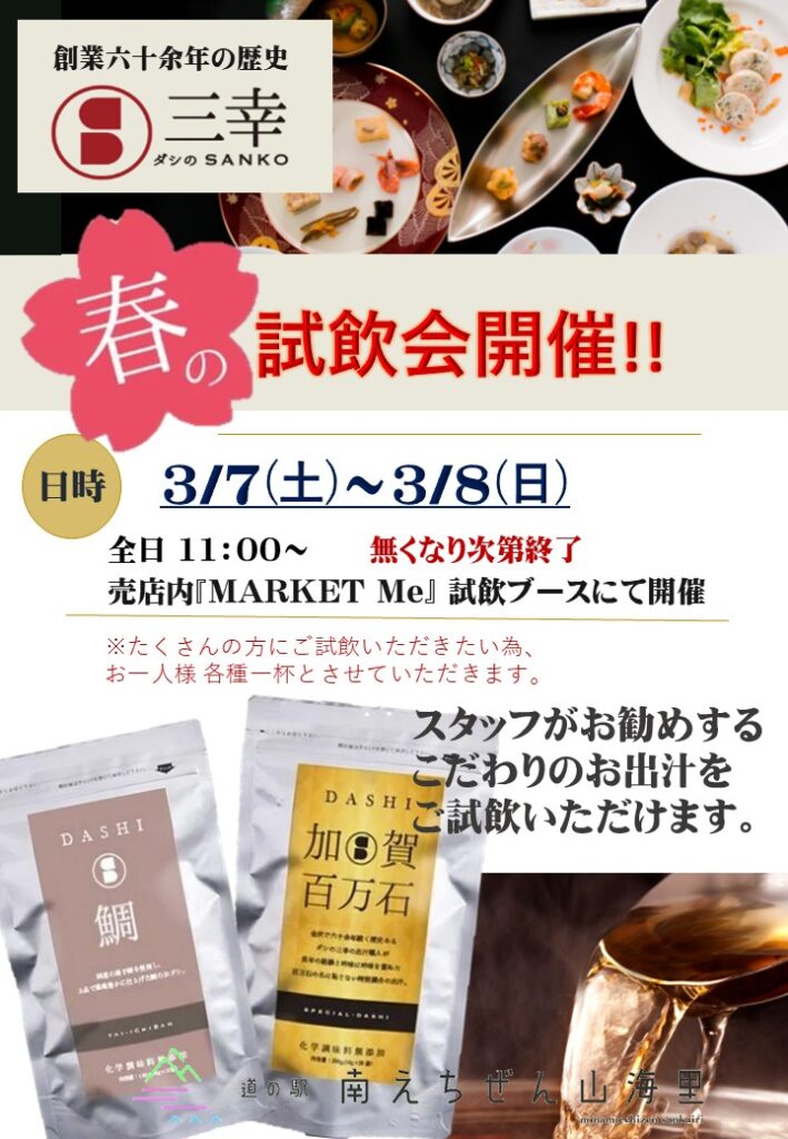 皆様に、この体に良くて美味しい出汁を味わっていただきたく、試飲の場を設けさせていただきました。