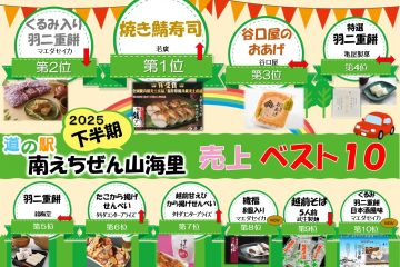 お知らせ NEWS TOP Marketおすすめ 新着情報 お知らせ 2026.01.03 FOODHALL Me売上ベスト5 お知らせ 2026.01.03 売上ベスト10発表 お知らせ 2026.01.02 営業時間変更のお知らせ お知らせ 2026.01.01 謹賀新年 2026 お知らせ 2025.12.20 『芝寿し』あります お知らせ 2025.12.20 テイクアウト店冬季休業について お知らせ 2025.12.14 年末年始の営業のお知らせ お知らせ 2025.12.12 こどもクリスマスイベント2025 お知らせ 2025.12.10 日本唯一の燻(いぶ)す干し柿 お知らせ 2025.12.06 御菓子処うさぎやの【もちパイ】他 お知らせ 2025.12.01 エヌアンドエムドーナツの『ベイクドSoyドーナツとおとうふカヌレ』が新登場! お知らせ 2025.11.22 Xmasツリー飾り付け お知らせ 2025.11.09 富山名産『源』の【ますのすし】が新しく仲間入りしました お知らせ 2025.10.19 ふたりでマルシェ お知らせ 2025.10.19 3種のカタラーナ 揃いました! イベント 2025.10.06 4周年記念祭 開催! お知らせ 2025.10.03 新発売!【くるみ入り羽二重餅日本酒風味】 新着情報 2025.09.24 10/16(木) 第11回 ママ・マルシェ開催! お知らせ 2025.09.20 売店【MARKET Me】の売上ベスト10 お知らせ 2025.09.20 屋上から「おかし」が降ってくる第4弾 イベント 2025.08.22 第3回 屋上から「おかし」が降ってくる! お知らせ 2025.08.14 延長営業します!(8/14-8/16) レポート 2025.08.12 皆様のおかげで、予想以上にたくさんの石が集まりました! お知らせ 2025.08.05 お盆用菊の販売 お知らせ 2025.08.05 ワイン試飲販売会「福井の美食とのペアリング」 お知らせ 2025.08.03 オリジナル インフューズドコーヒー出来ました! お知らせ 2025.08.03 武生五中すいかアイス試食販売会開催決定! お知らせ 2025.08.02 「大三茶舗」の黒豆麦茶 試飲会開催! イベント 2025.07.24 夏の感謝祭(7/26-7/27) お知らせ 2025.07.19 第2回 屋上から「おかし」が降ってくる! 新着情報 2025.07.17 7/27(日) アドベンチャー型石集めイベント開催! お知らせ 2025.06.24 売店MARKET Me棚替え お知らせ 2025.06.21 【重要】6/24 駐車場一部封鎖のご案内 お知らせ 2025.06.06 飲食【FOODHALL Me】臨時営業時間変更と2階トイレ使用中止 お知らせ 2025.06.06 売店 臨時営業時間変更 新着情報 2025.06.02 6/5(木) 第10回 ママ・マルシェ開催! お知らせ 2025.05.22 南越前町に本屋さんがやってくる(情報第2弾) お知らせ 2025.05.03 こどもの日、屋上から「うまい棒」が降ってくる! お知らせ 2025.04.29 新!ご当地撮影スポット お知らせ 2025.04.27 「伝統的酒造り」のユネスコ無形文化遺産登録 お知らせ 2025.04.19 期間限定!駄菓子屋がやってきた! お知らせ 2025.03.14 2025/3/15(土)~南越前町新ご当地グルメ 販売開始 イベント 2025.03.13 VERCOSTA FUKUI 地域交流イベント 新着情報 2025.02.14 2/24(月) 第9回 ママ・マルシェ開催! お知らせ 2024.11.20 ウィンターナイトイベント 開催⛄️✨ お知らせ 2024.11.18 北陸カレーフェス2024に出店します!! お知らせ 2024.10.30 福井の冬といえば、「水ようかん」 発売開始 新着情報 2024.10.18 10/30(水) 第8回 ママ・マルシェ開催! イベント 2024.10.09 10/13(日)3周年記念イベントの開催 お知らせ 2024.10.08 10月11日、12日のFOODHALL Meの営業時間について お知らせ 2024.09.19 道-1グランプリ2024に出店します! お知らせ 2024.09.08 日光さる軍団「猿まわし」特別公演のお知らせ お知らせ 2024.08.06 8/25(日) さんかいりパークで水遊び イベント 2024.08.06 ”8/25(日)108(とわ)の鐘”うちわ配布&健康測定会 新着情報 2024.08.09 日光さる軍団「猿まわし」特別公演のお知らせ お知らせ 2024.08.05 お盆用菊売り お知らせ 2024.07.19 収穫祭!夏野菜の即売会 お知らせ 2024.06.12 夏にぴったり!新商品発売!! お知らせ 2024.06.11 夏季短期アルバイト募集!! お知らせ 2024.05.27 「108(とわ)の鐘」の案内板が設置されました! 新着情報 2024.05.13 6/12(水) 第7回 ママ・マルシェ開催! お知らせ 2024.05.07 カイリューの6条大麦カレー新発売 お知らせ 2024.05.01 見るだけじゃない水族館♪『あそべ~る水族館』が、道の駅にやってきます! お知らせ 2024.04.26 MARKET ME 福井の地酒 春の無料試飲会 お知らせ 2024.03.22 さんかいりパーク内「シンボル塔の鐘」名称決定のお知らせ お知らせ 2024.03.19 県内初!『カイリュー』自販機 登場!! お知らせ 2024.03.10 来場者300万人達成! 新着情報 2024.02.13 2/25(日) 第6回 ママ・マルシェ開催! 新着情報 2024.02.01 たくさんのご応募ありがとうございました お知らせ 2024.01.25 Valentine’s Day 2024 お知らせ 2024.01.20 紫式部が暮らした越前市「しきぶきぶん」 お知らせ 2024.01.15 令和6年1月1日能登地方大地震義援金のお願い お知らせ 2024.01.02 1月17日停電による営業時間変更 お知らせ 2023.12.15 漫画家「ちづはるか」先生の作品に、当駅が描かれました。 お知らせ 2023.11.28 ウインターナイトイベント開催(2023-2024) イベント 2023.11.20 【11/26(日)】健康測定会 お知らせ 2023.11.18 収穫祭!2023 お知らせ 2023.11.04 龍泉刃物 梵天雲竜 改が登場! お知らせ 2023.10.29 水ようかん 取扱いが始まりました! お知らせ 2023.10.26 ニホンミツバチの最高級はちみつ お知らせ 2023.10.05 2周年記念イベント開催 お知らせ 2023.09.17 海洋ごみでキーホルダー作り&海洋ごみの啓発展 イベ